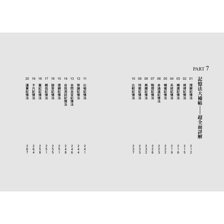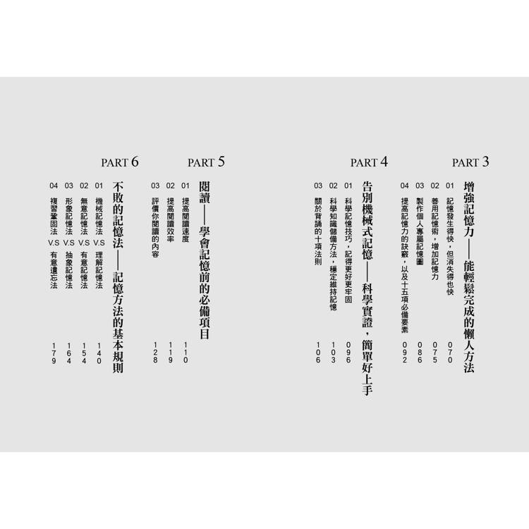 書中系統整理多種經過科學驗證的記憶方法,從萬用且極其簡單的記憶訣竅,到歷史名人親身實踐、足以改變學習與人生的記憶法,全面解析各類記憶技巧的差異與應用時機。