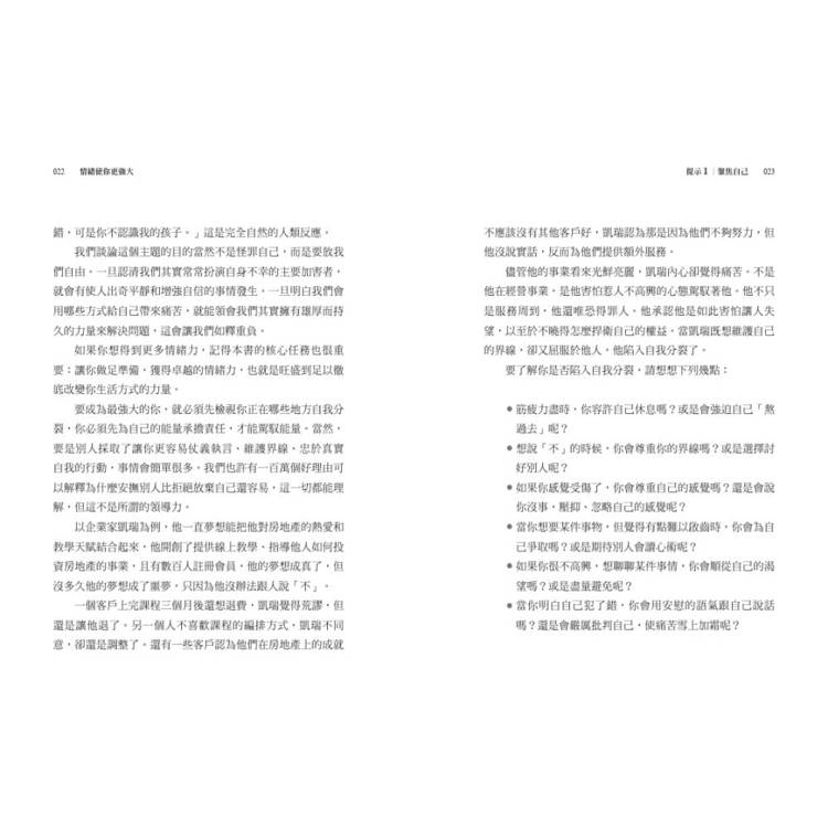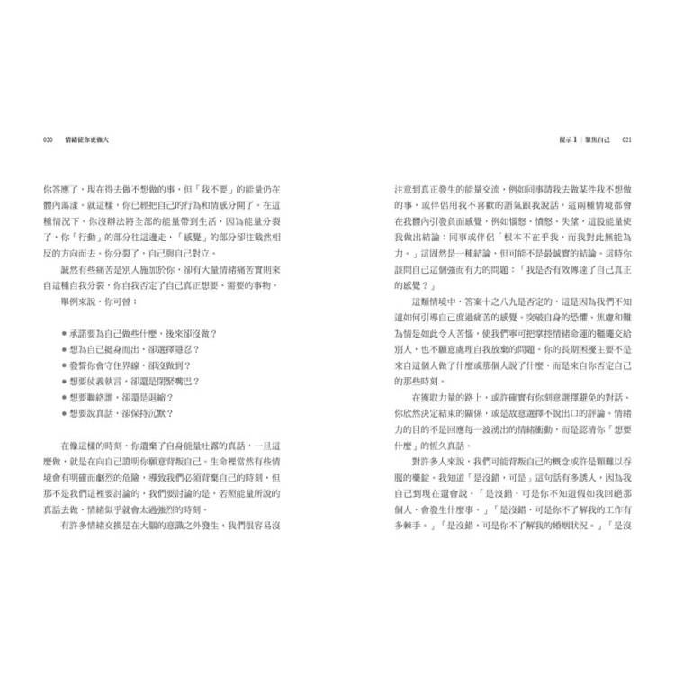 情緒是連接你與嚮往之地的橋梁,學會運用情緒能量,你會覺得活力充沛、思緒清晰且心滿意足。我們在這本書中將致力於提升你的情緒,讓你即使處境艱難,也能維持情緒強度。