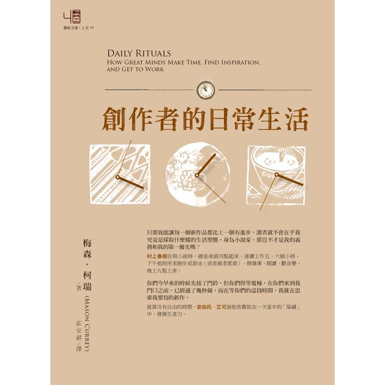 柯瑞書寫過去四百年來161位偉大創作者每天怎麼分配時間,運用自己最大的能力,如何安排他們的作息,發揮創意和生產力。藉著撰寫這些人物日常生活平凡的細節,提供新鮮的角度,來看他們的個性和生涯,描繪出這些藝術家在習慣驅使之下有趣而細微的肖像。