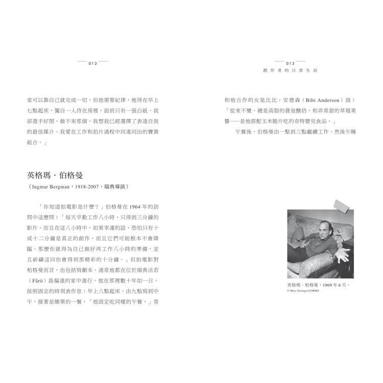 在《創作者的日常生活》裡,作者柯瑞一一敘述他們的日常工作習慣,