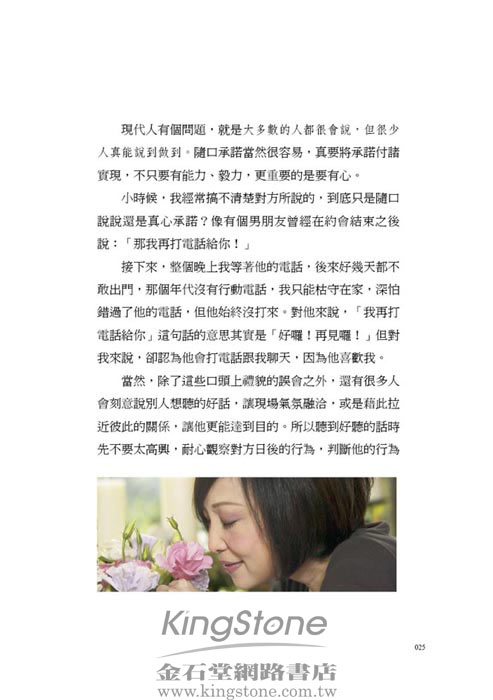 Positive Thinking(正面思考):不要帶著舊傷談新戀情,不要以為一次失敗就會永遠失敗。以正面角度思考、包容,愛情才會有希望!