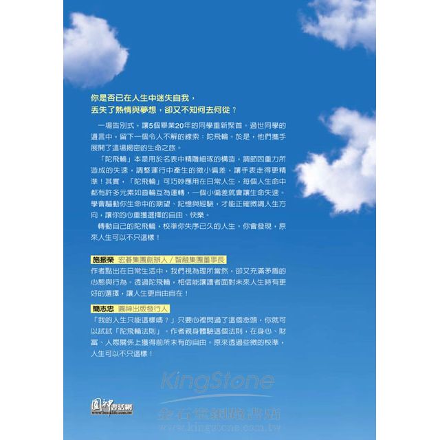 作者點出在日常生活中,我們視為理所當然,卻又充滿矛盾的心態與行為。透過陀飛輪,相信能讓讀者面對未來人生能有更好的選擇,讓人生更自由自在!