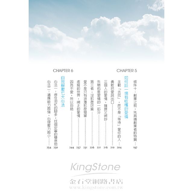 主動「去找」,而不是「等待」愛你的人/勇敢把愛說出口/三個人的愛情,擁擠又微妙/失戀也是愛情的一部分/第三者沒那麼好當/愛不是只有浪漫那麼簡單/虛擬的世界,網上的愛情/因為不愛,所以拒絕