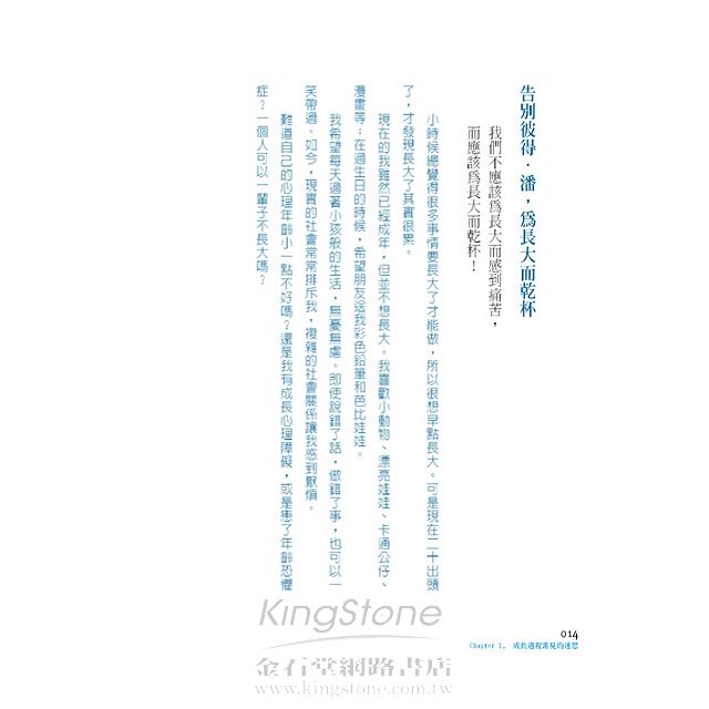 告別彼得‧潘,為長大而乾杯/改變對命運的態度,相信自己會幸福/從容做好人生即選擇