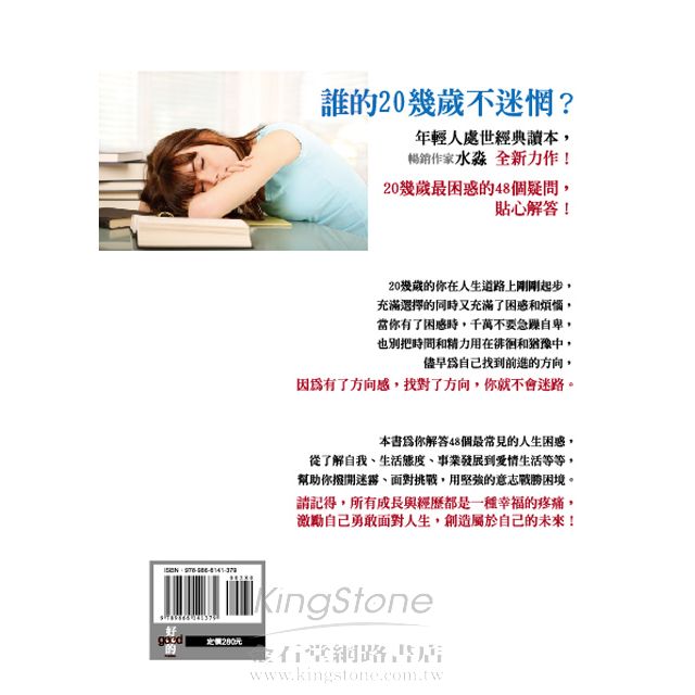 2011/12/29 賀!《20幾歲,就定位》印量突破10萬本!系列作話題持續沸騰。 會這麼熱賣,其實是有故事的。 「在北京書展上發現水淼這本書。這樣的題材我找了好多年,翻看內容後當下直覺,這是每個年輕人都該入手一本的『處事祕笈』。」社長從北京回來後,交代了這段話!故事很短,但立意很明確就是了!(笑) 小編身為七字頭的這一代,對於老是被貼上負面標籤,心裡真的很不服氣!對於人生,我們也是拚了命在努力啊!當我們從學生身份轉換成社會新鮮人,身邊的人都只管下命令:「這樣做,那樣做」,但在辛苦掙扎的過程中,卻沒人告訴我們「怎麼做」? 看了這本書,小編終於明白社長為何如此推薦了。書中不寫不著邊際的安慰,文字像在耳邊解惑般,帶領迷惘的人一路闖關,可以說是相當給力的一本「處事祕笈」。真的很推薦給剛剛踏入職場的社會新鮮人,翻著看著,原本糾結的思緒,就這麼一點一點被解開,真的很神奇喔! 「瞬間爆發╳持續力=20幾歲,就定位」這個公式及目標顧客群清楚、明確,以至於很快就獲得市場迴響。第一集推出時,公司尚未架設部落格和臉書,所以當時編輯信箱幾乎每天都會收到讀者的來信:「水淼:您的書寫得富有新意,文筆很有感染力。」「雖然我今年滿三十歲了,但是我想找回二十幾歲時我不知道的那些。」「看完書之後找到了一些自信。」……對於這些回應和評論,社內同仁先是一片欣喜,也認知到後續必須更加倍用心經營這個系列,才不負讀者們熱情支持!