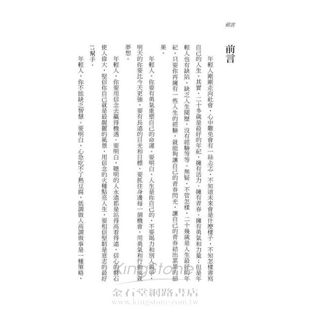 二十多歲是人生最寶貴的年紀,二十多歲的年輕人,人生有無限的可能,具有很大的可塑性。你的人生就在自己的手裡,未來的藍圖全都需要你自己去策劃。作為一個年輕人,不要再抱怨上天沒有給你過人的天賦,不要再抱怨自己不是生於豪門、富人家,不要再抱怨自己沒有強有力的靠山和背景,要知道,未來的一切都屬於那些敢於挑戰生命的勇敢者,只要你肯努力,只要你肯付出汗水,只要你敢於拼搏,那麼你的人生必將與眾不同。