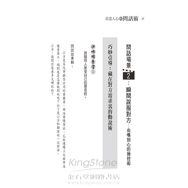 問話場景2:瞬間說服對方─由嘴到心的操控術 30