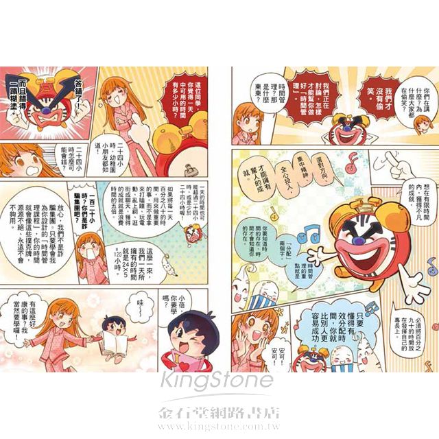 (2)本書以活潑的漫畫形式,傳授小讀者時間管理及規畫的技巧,不管日常生活或讀書學習,都能掌握時間、發揮最大效率,讓小朋友變身時間的主人。