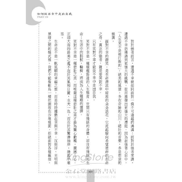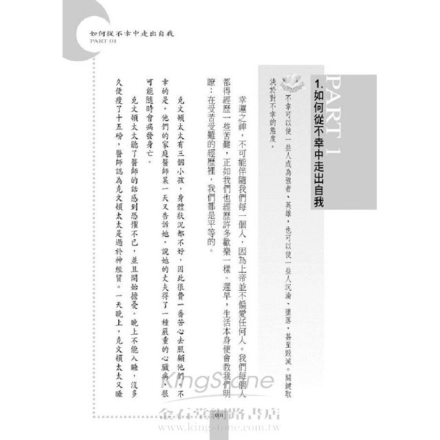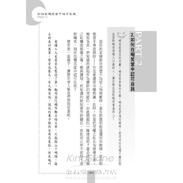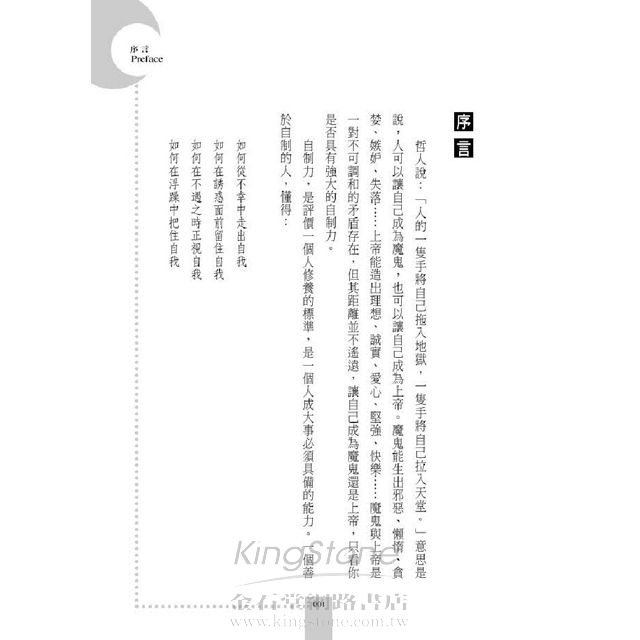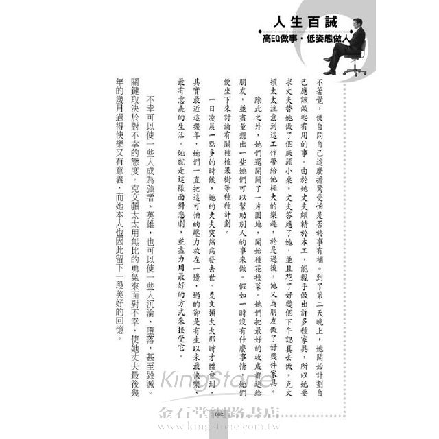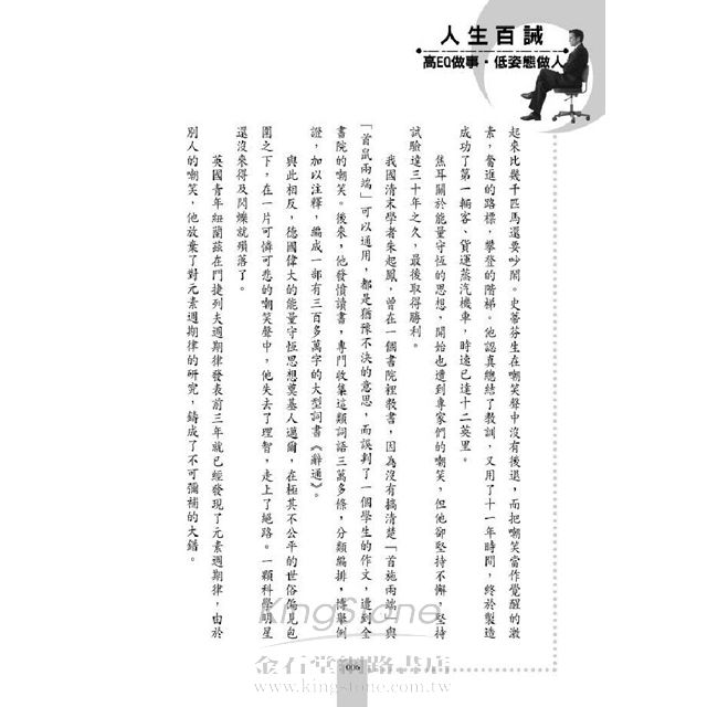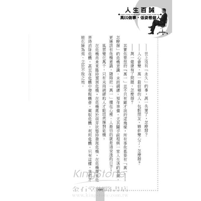 本書運用大量典型生動的實例,深入淺出的道理,教導讀者:強化思緒、調整心態、培養信心、規劃人生、把握機遇、挑戰逆境;它就像一盞點亮心智的明燈、一劑醍醐灌頂的良藥。
