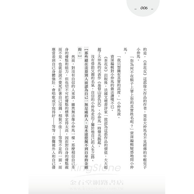 帶著這種興奮和疑問,他迫不及待地乘車造訪大仲馬家。令他大吃一驚的是,《茶花女》這部偉大作品的作者,竟是大仲馬名不見經傳的年輕兒子小仲馬。