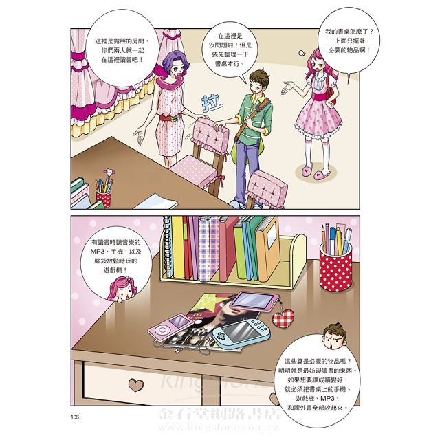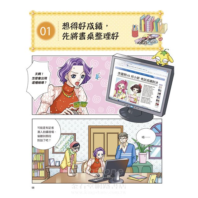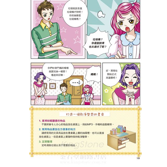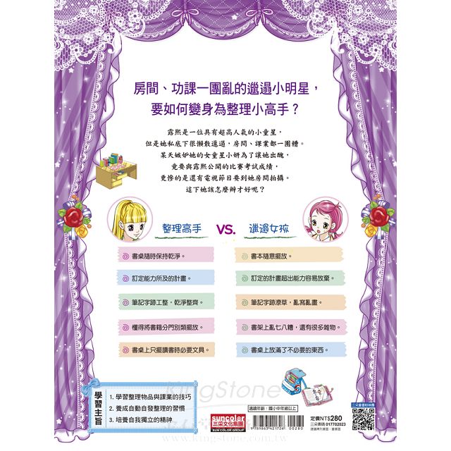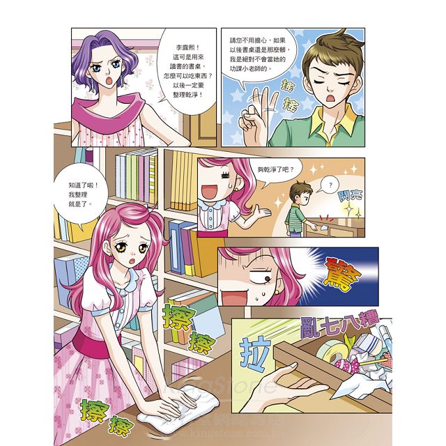兩個人雖然常常鬥嘴,但是露熙開始很認真的學習。請跟著露熙一起學習整理自己的房間、衣櫥,以及讓自己成為學業資優生的筆記整理法吧!很快的你也會看到自己的改變,不知不覺間成為品學兼優的資優生喔!