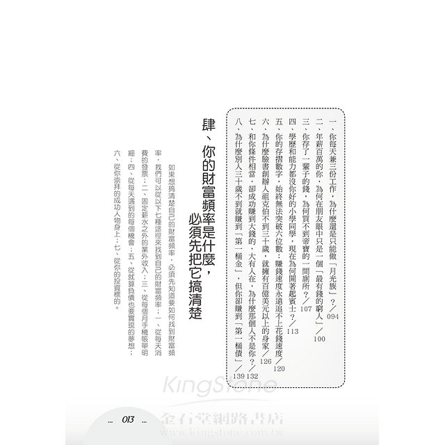 二、固定薪水之外的業外收入,可以找出你的財富頻率/153