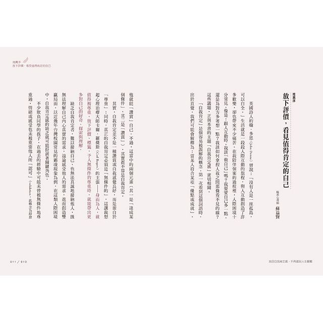 ◎一般探討自我肯定感的書,總是強迫人要變得更正面,結果經常適得其反,這本書則教我如何珍惜自己,幫助受傷的心好好痊癒。