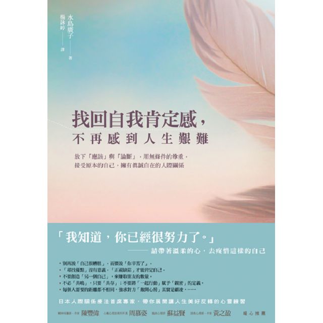 ◎身而為人,就值得被尊重。放下評價、標籤,予人無條件的尊重時,就能帶出更多對自己的好奇、探索與理解。自我肯定並不需要條件;也正因無需條件,它創造出來的安全與信任,反而是最穩定的。水島廣子醫師擅長以生活常見事件為例,再三懇切地叮嚀,透過耐心的練習,自我肯定確實能打開我們看待自己、他人與世界的另一雙眼,讓生命的恩惠出現。——臨床心理師 蘇益賢