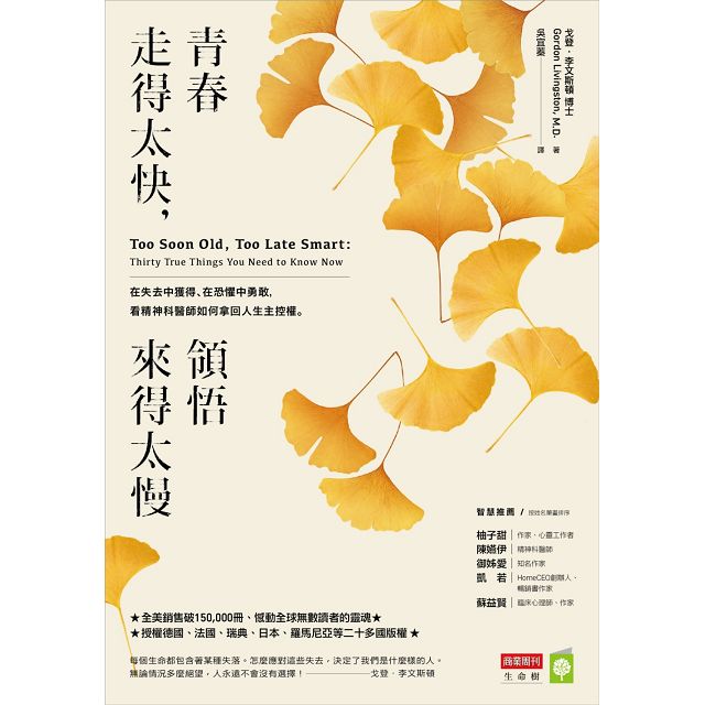 《青春走得太快,領悟來得太慢》這本書,正是個一窺心理諮商神祕面紗的好機會。在閱讀這三十篇短文的過程,彷彿看見了三十個(甚至是更多人)的生命困境。以及在面對這些困境時,身為助人者的戈登.李文斯頓醫師,如何以他的知識與自身的生命經驗,細細咀嚼許多案主在不同時空、說出口的類似話語,並從中敏銳地帶出許多「改變與不變」、「接納與面對」的可能性。