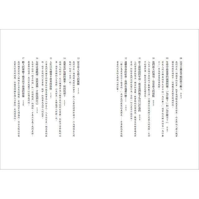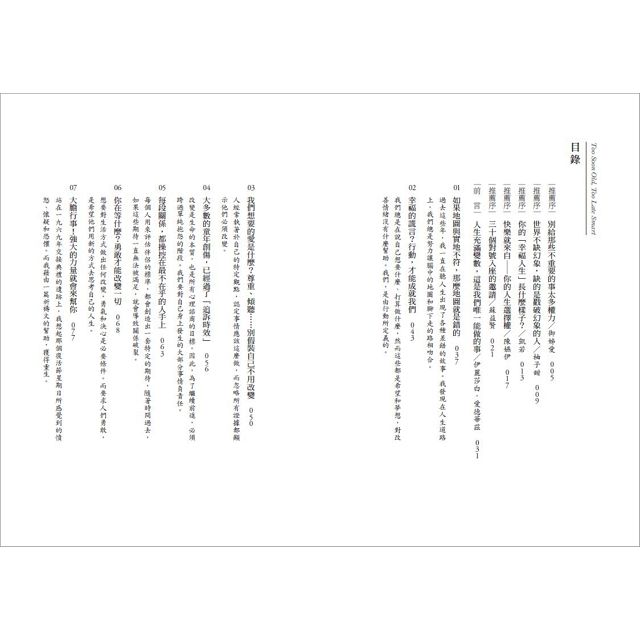 亦或是,隨意翻閱本書之後,就放下書本去過日子吧!假以時日,當你想找人說些什麼、聊聊近況的時候,再從架上拿下這本書。重新讀起某些熟悉卻不再一如往常的篇章,我們或許又能從中再找到一些過去沒發現的啟發。