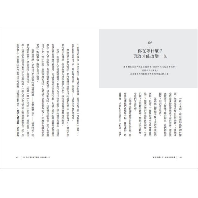 這也是本書讀起來並不如你所想這麼「暖心」,有時甚至讓人覺得「好了、好了,你先別說了!我還沒準備好」的原因。在諮商室裡,出現的情緒不總是歡樂而舒服的。更多時候,我們勇敢卻坦然地哭著。雖看似難堪,但這種發自內心的誠實,卻是未來我們面對其他難題時,可以變得勇敢的原因。