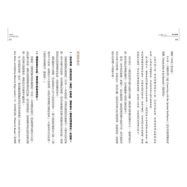 柯維的作品從過去到現在影響了世界上成千上萬的人。在本書中,他做了思想上的大躍進,引介對我們生活和職場上都有深刻影響的觀念與實踐。《第8個習慣》是一本極優秀的書,是人類心靈的勝利,在我的觀念裡,是柯維最重要的作品。──班尼斯(Warren Bennis)/領導力研究先驅。