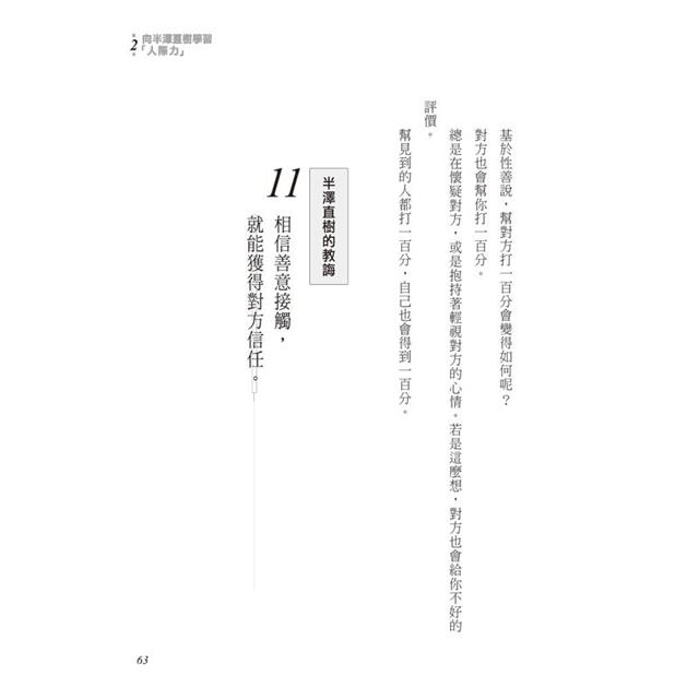 縱使是虛構的主角的故事,也別輕易地否定,如果想學習,一定能學到各種事物。半澤的生存方式、思考事物的方式,想必有不少地方能使人深受啟發。就連我自己,也從日劇《半澤直樹》學到了如何磨練戰勝逆境的精神力。