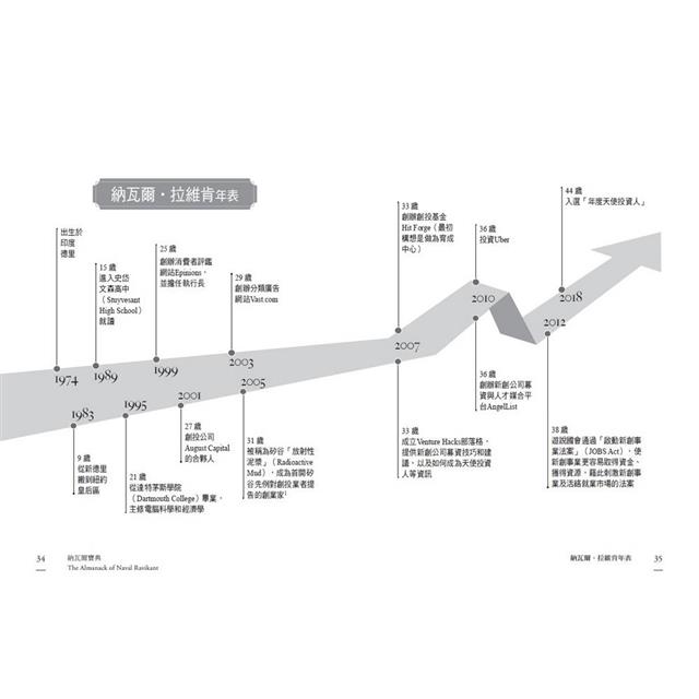 在美國,當一本書被標上 Almanack (年鑑)時,通常都是集結該人物的人生智慧。例如描寫富蘭克林的 《窮理查年鑑》(Poor Richard's Almanack)、巴菲特合夥人蒙格的《窮查理的普通常識》(Poor Charlie's Almanack ),以及這本書(The Almanack of Naval Ravikant)。