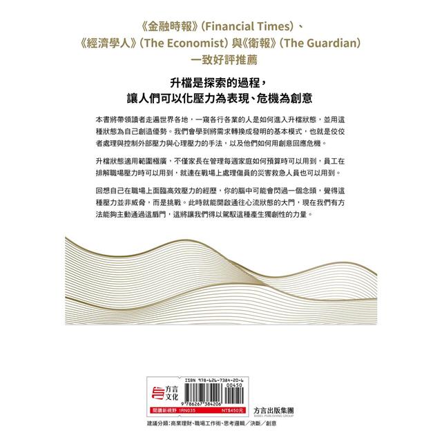 本書將帶領讀者走遍世界各地,一窺各行各業的人是如何進入升檔狀態,並用這種狀態為自己創造優勢。我們會學到將需求轉換成發明的基本模式,也就是佼佼者處理與控制外部壓力與心理壓力的手法,以及他們用創意回應危機的方式。