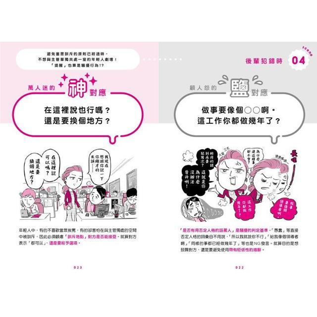 從完全相反的兩個面向──可能傷害對方的「鹽對應」VS能讓彼此心意相通的「神對應」,簡明扼要地進行說明。此外,解說還配有讓人會心一笑的故事插圖,就算是嚴肅的主題,各位也能放心地輕鬆閱讀。