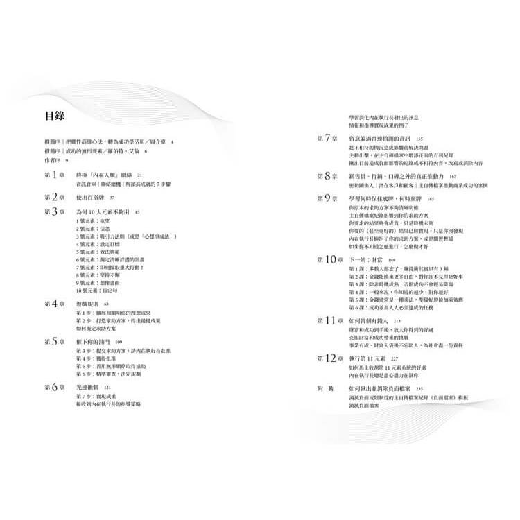 你還會讀到幾十個案例,說明我的客戶和同事是怎麼應用第11元素,開創和發展事業、增進收入、淨值成長、打造全新事業、寫暢銷書、幫助他人創業成功等。