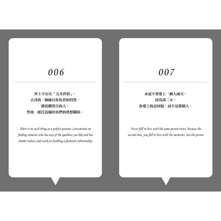 本書收錄的語句和「殘酷的真相」,大部分是我自己的體悟,也有一些是我在那段時間偶然聽見的引言,難以考證實際出處。總之,我希望它們能陪伴你度過難關。相似的經歷會產生共鳴、激發出力量,幫助你在這段個人旅程繼續走下去。