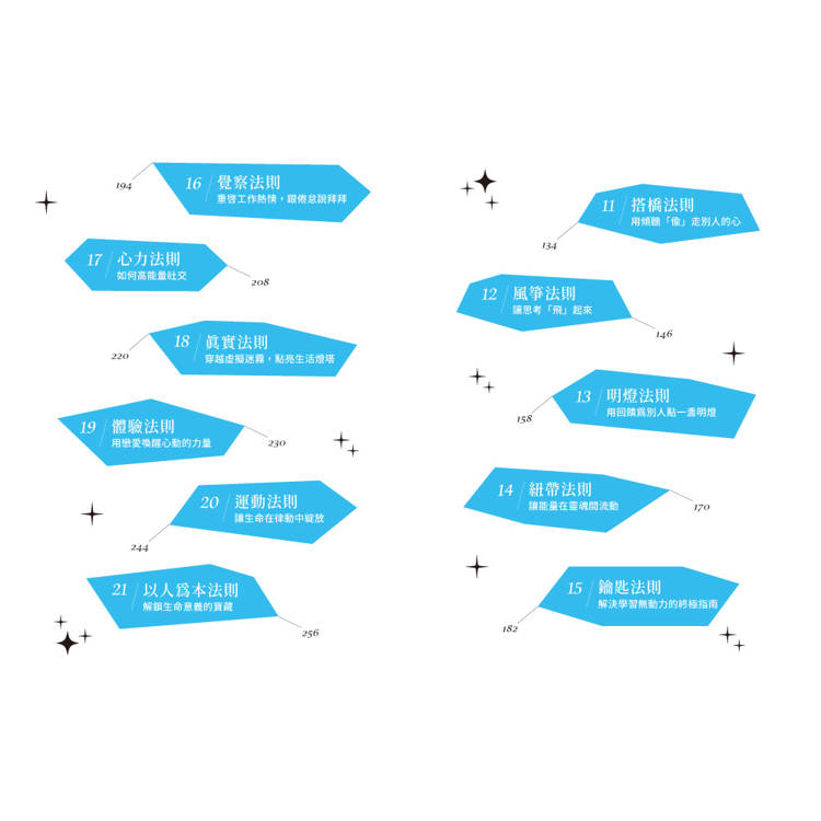 書中還有提及覺察法則、真實法則、自主法則……等21條實用性極強的關鍵法則,直擊你人生中每一個關鍵卡點!
