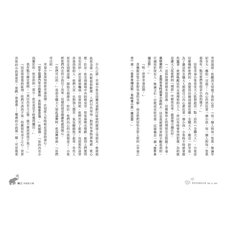 1. 文化與視野的廣泛性:書中的小象遊歷了不同國家,接觸到多元的文化背景,藉此視角,揭示人類的共通性和差異性,也讓幸福的概念突破地域與文化限制,變得更加普世且具包容性。