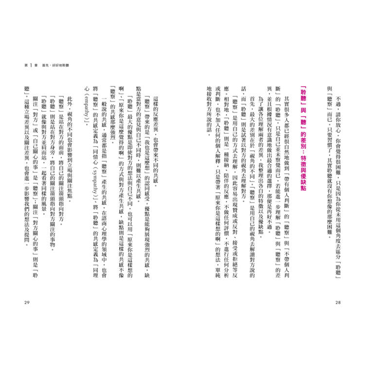 如果硬要說這本書與其他同樣談論「聆聽」或「聆聽技巧」的書籍有什麼不同之處,也許最大的不同就是這一點。