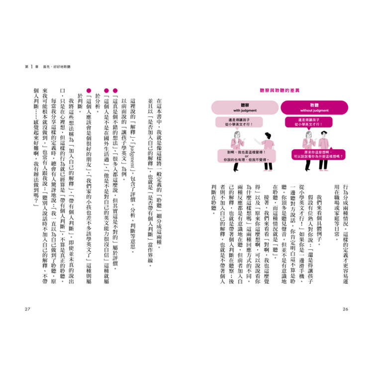 「我知道聆聽很重要」、「我覺得要把聆聽當作表達方式的選項之一」、「我覺得自己都在聽,但我真的聽進去了嗎?我也不知道」。我希望有這些想法的你,一定要看一看這本書。