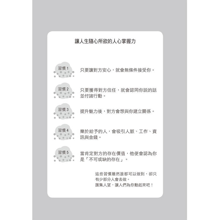 本書將介紹能夠抓住人心的幾個簡單習慣。