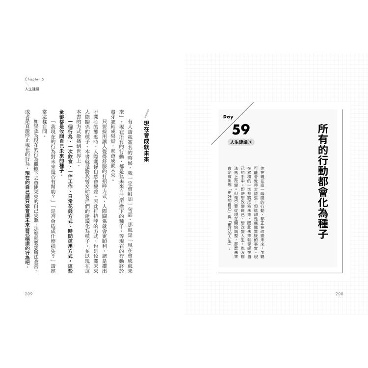 本書獨家研發出「80天人生修復計畫」。每天提出一個問題,只要思考答案,並寫下三行筆記,就能逐漸修正bug,讓潛意識成為你實現目標的強大助力。人生是反覆挑戰的結果,而你所有的努力都不會白費,當你走完80天的豐富歷程,你將會發現:人生不是做不做得到,而是有沒有去做而已!