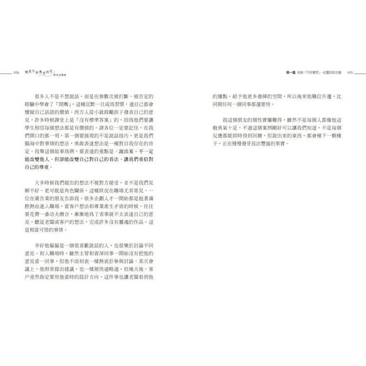 本書將帶給每一為願意突破「不好意思」的你,真正的成熟,不是學會察言觀色,而是學會在眾聲喧嘩中,找到自己最真實的聲音。