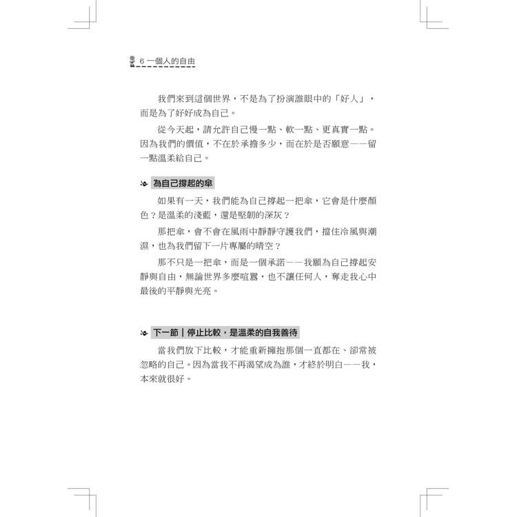 2、停止比較,是溫柔的自我善待——我不必一樣,我原本就很好 07