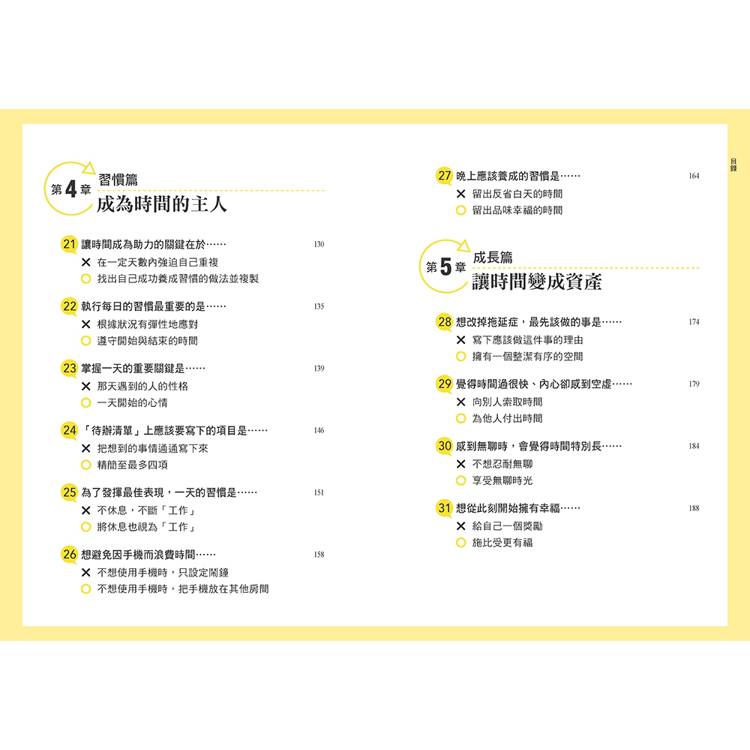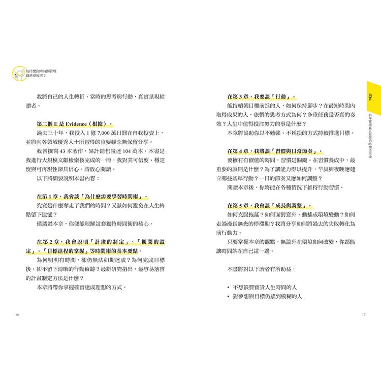 本書從「時間、計畫、行動、習慣與成長」五大面向,