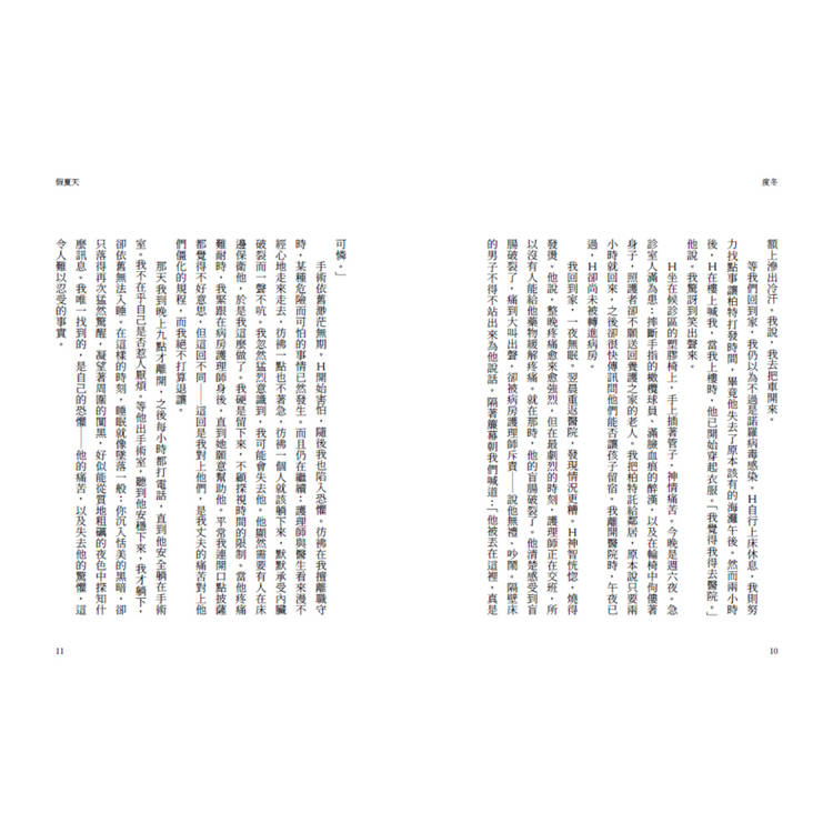 H平安出院了,甚至高高興興回去工作。我還待在家。長年的緊繃一路轟隆作響,如今我的壓力已達頂點。我覺得身體無法前往公司,就好像有一條彈力帶把我拴在房子,每當我試圖搭車上班,彈力帶就「啪」地把我彈回屋內。這並非一時衝動,而是身體上的徹底抗拒。我已經硬撐很久,但終於有什麼斷了。也許就是名符其實的斷了。H住院時,我開始注意到右腹側有一股悶痛,本來以為是對他闌尾炎的共情疼痛。但後來那股疼痛一直持續,事實上,似乎還在他好轉後加劇了。稍一用力,我就痛得皺眉。上週,我在大學講台上痛得彎下腰,腦子裡除了痛,什麼都無法思考。我搭公車回家,此後幾乎就沒再出門。