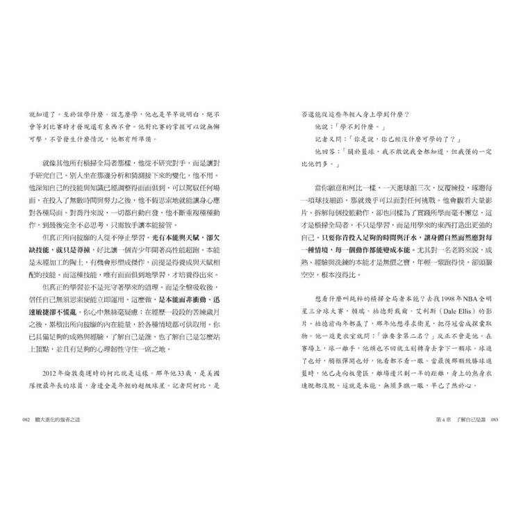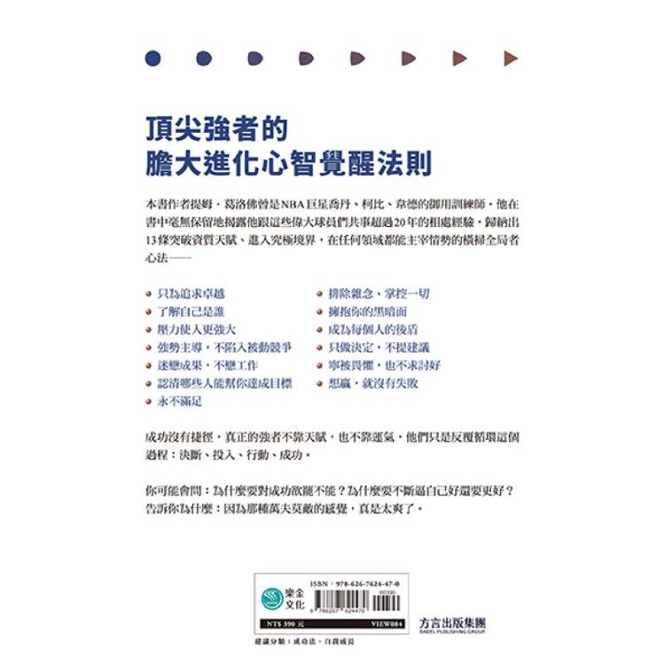 本書作者提姆.葛洛佛曾是NBA巨星喬丹、柯比、韋德的御用訓練師。他在書中毫無保留地揭露他跟這些偉大球員們共事超過20年的相處經驗,歸納出13條突破資質天賦、進入究極境界,在任何領域都能主宰情勢的橫掃全局者心法──