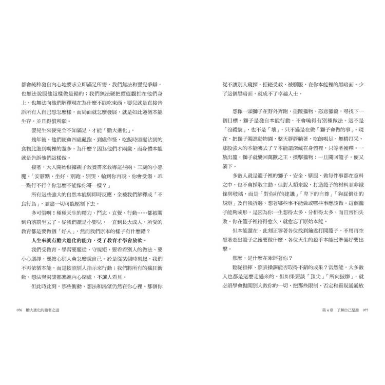 如果以上敘述尚不符合各位的情況,那麼恭喜你,你即將展開一條發掘內在力量的旅程,也將隨之脫胎換骨。