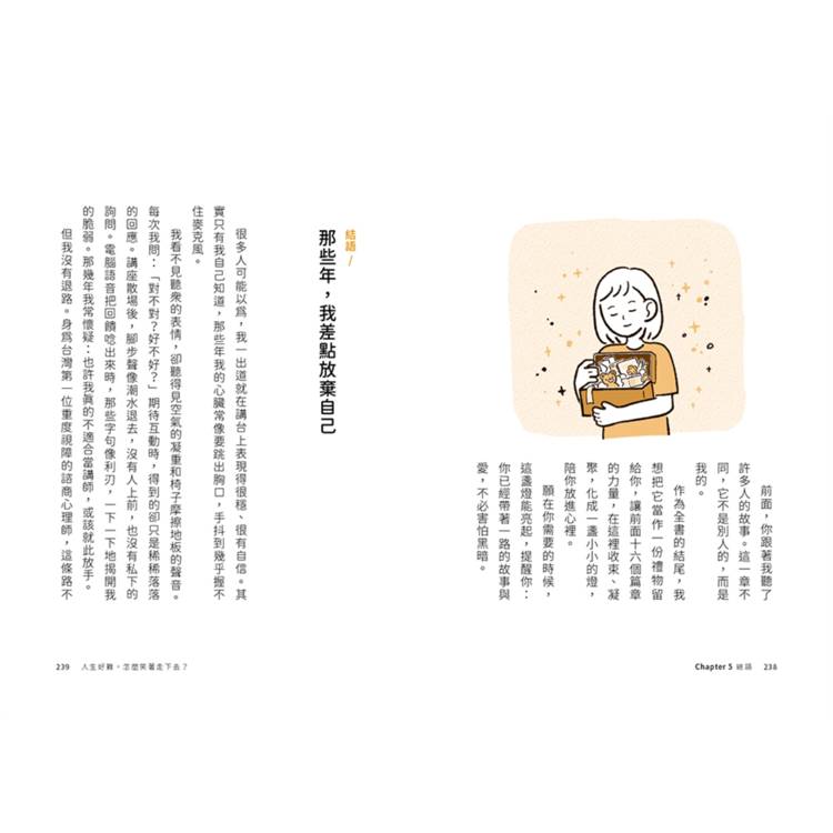 是的,即使人生不容易,我們也能把「我好難」活成「我可以」,然後,繼續笑著走下去。