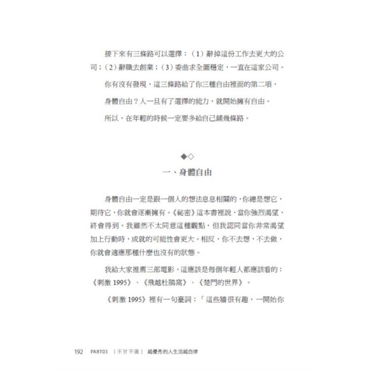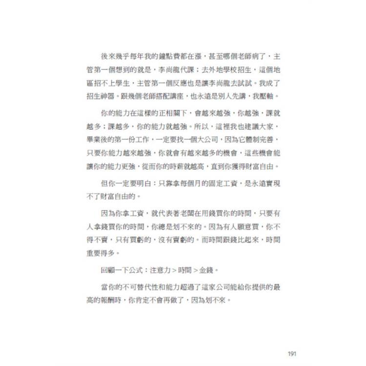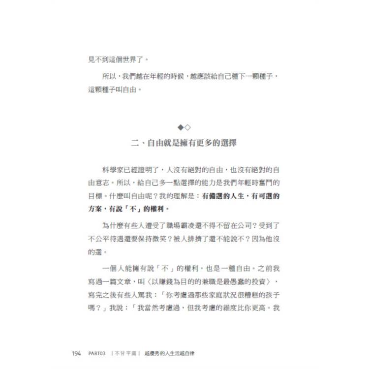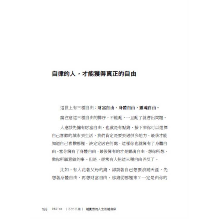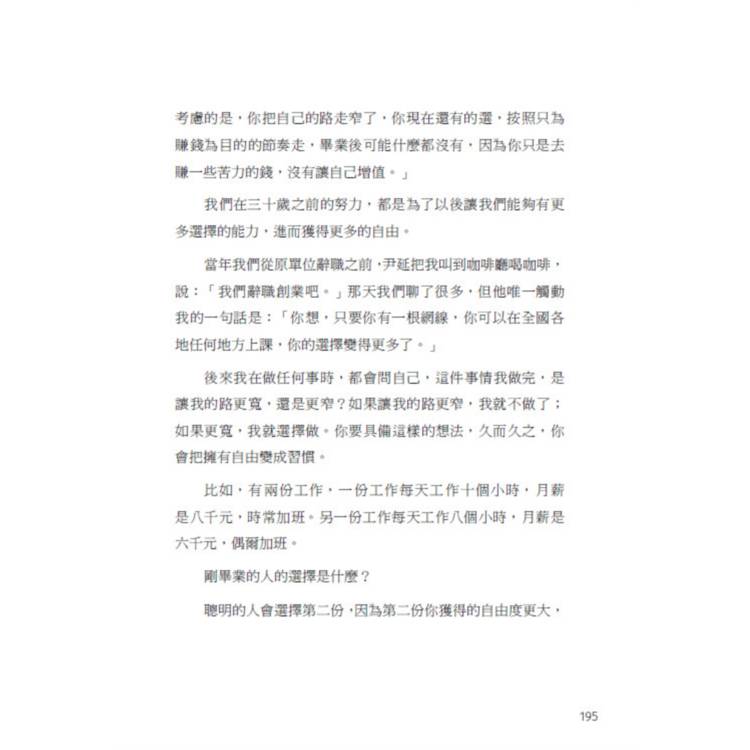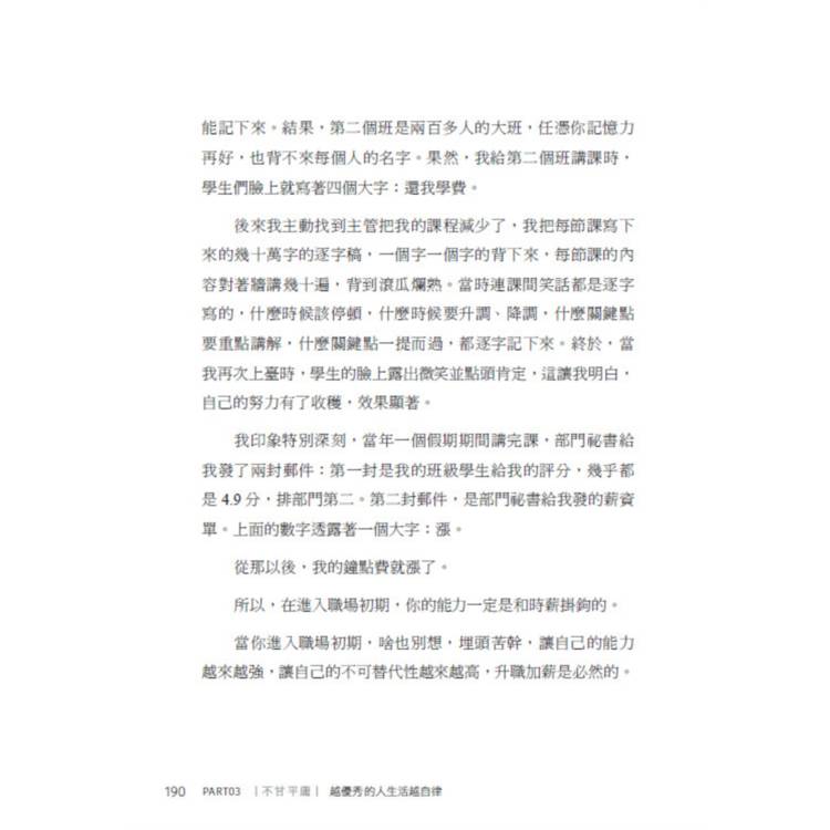 這不是「努力就會有結果」的簡單雞湯,而是一步一步教你掌握人生方向與自我精進的方法。從如何利用碎片化時間到建立核心競爭力,本書給出真正可行的行動策略。