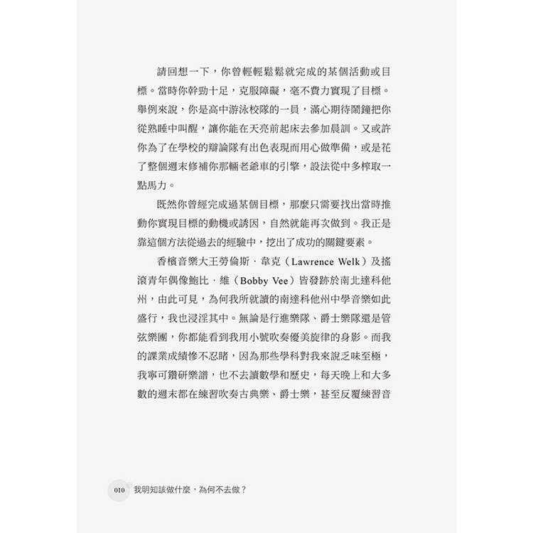 既然你曾經完成過某個目標,那麼只需要找出當時推動你實現目標的動機或誘因,自然就能再次做到。我正是靠這個方法從過去的經驗中,挖出了成功的關鍵要素。