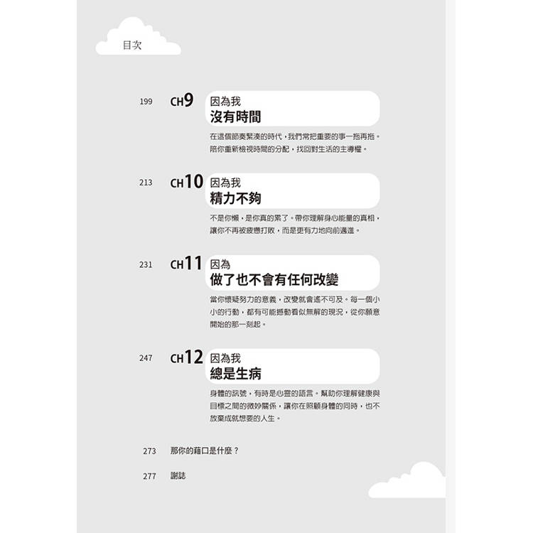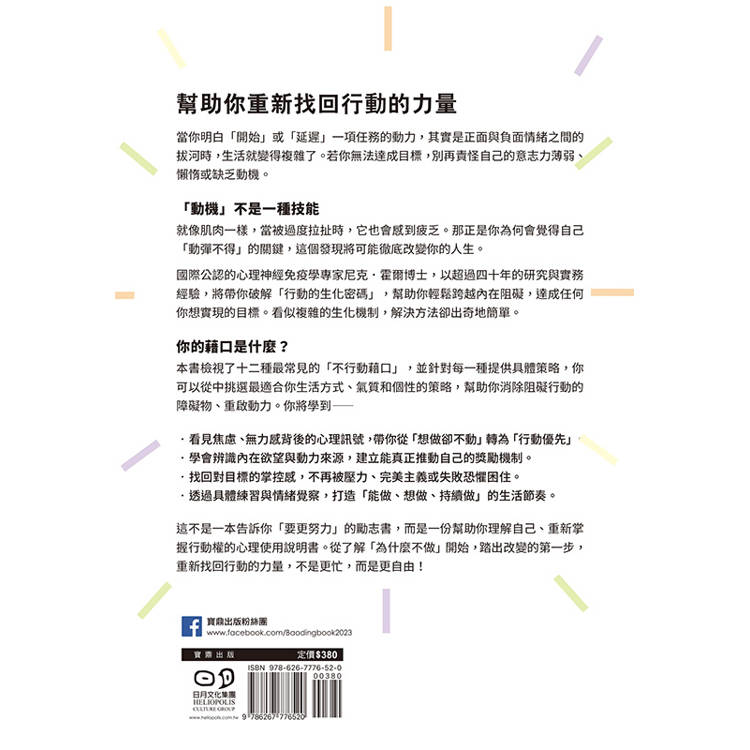 這不是一本告訴你「要更努力」的勵志書,而是一份幫助你理解自己、重新掌握行動權的心理使用說明書。從了解「為什麼不做」開始,踏出改變的第一步,重新找回行動的力量,不是更忙,而是更自由!