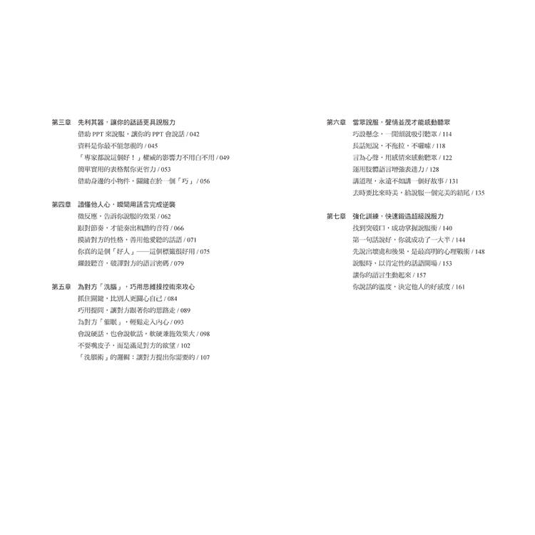 讓人心服口服,就這麼簡單。迅速提升你的說服力、讓別人聽進去,你才有機會。
