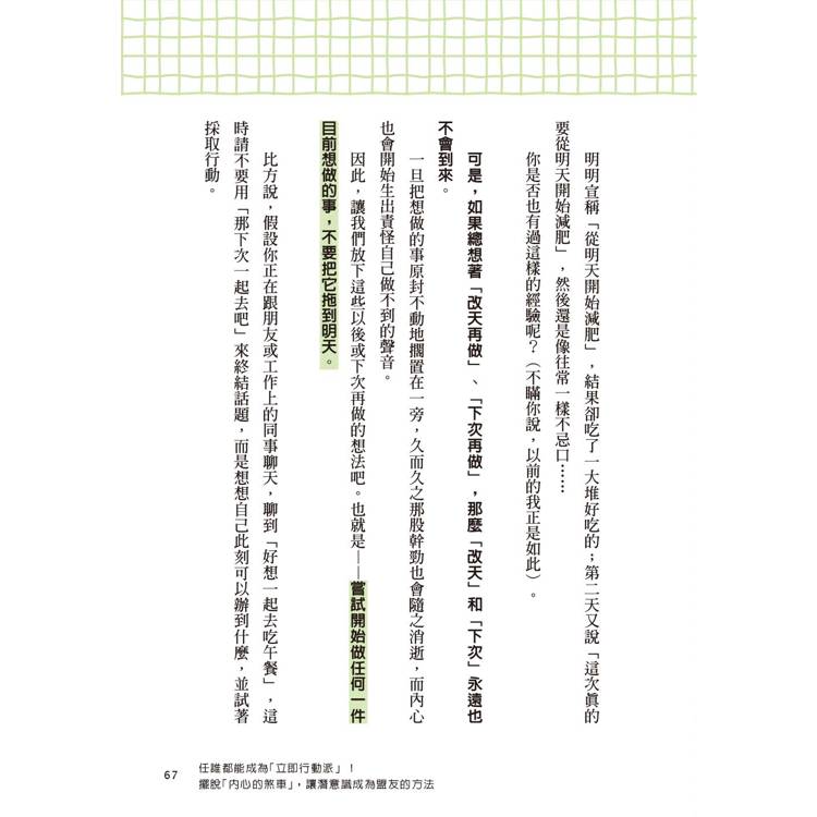 ◎教你停下拖延、開始行動,用最簡單的方法讓人生動起來