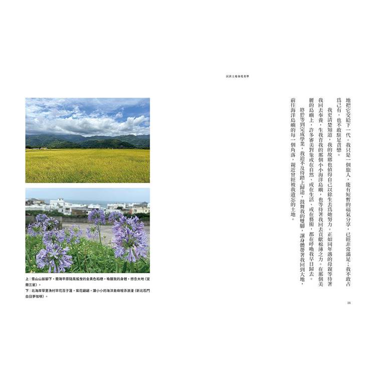 一如許多只顧著讀書以至於失去感覺能力的人,我曾經遠赴他鄉尋找土地與海洋,卻在歸鄉之後才發現,我早已擁有屬於自己的土地與海洋,並且早已徜徉在自然的懷抱中,只是當時我的感覺能力尚未甦醒罷了。