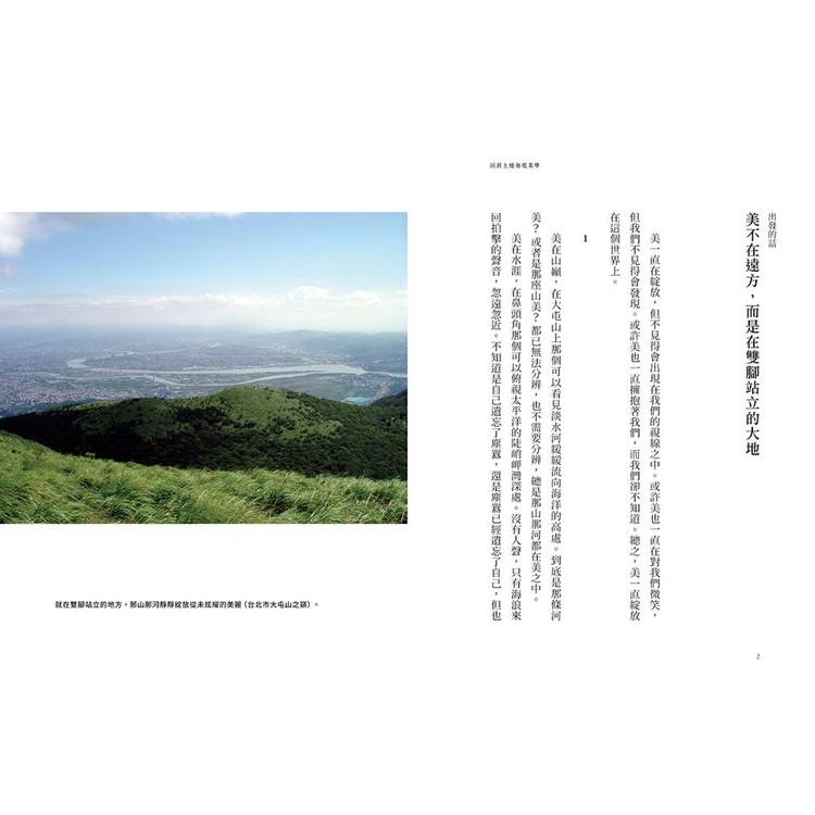 我曾經只重視腦袋,而不重視雙腳。我只重視從閱讀尋找知識,而遺忘雙腳站立的大地。這片大地雖然並不完美,但是,大地上仍有許多角落非常美麗,值得我們欣賞與珍惜。回首前塵,我曾經錯過不少美麗的角落,也虧待了許多幸福的片刻,當然我也就忽視了植根於大地的知識。