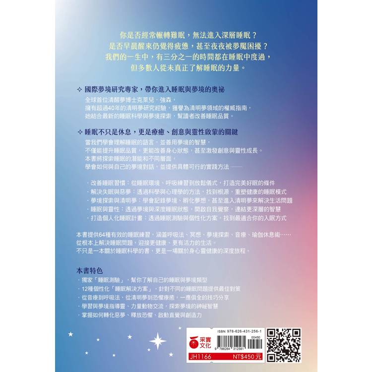 「這部著作猶如一座充滿深奧練習的寶庫,不僅能助你獲得最佳睡眠,還能活出最精采的人生。」——金伯莉.馬斯卡羅博士(Kimberly Mascaro, PhD),《夢是良藥》(Dream Medicine)作者