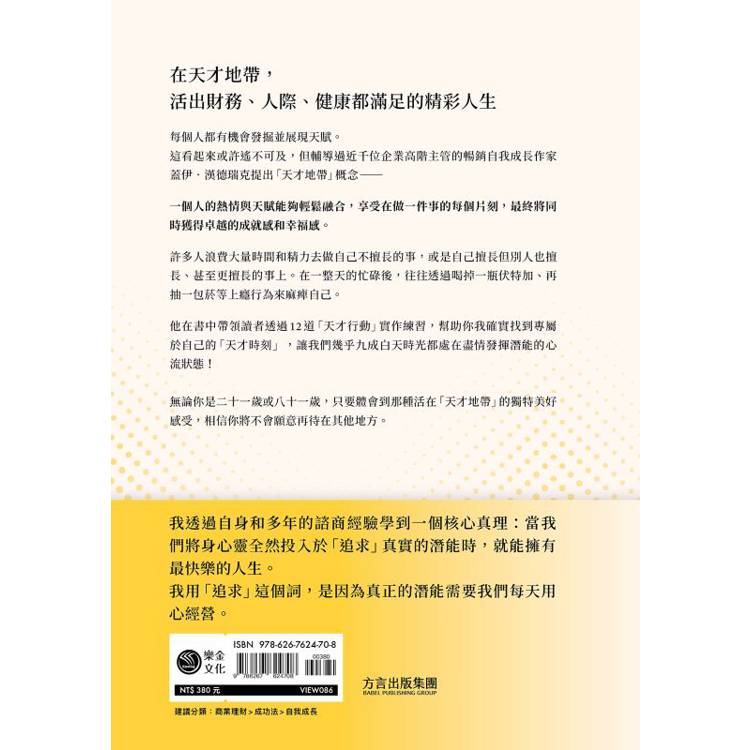 每個人都有屬於自己的「天才地帶」。本書提出一套簡單且全面地探索天賦的刻意練習,幫助我們充分發揮自己與生俱來的「天才資質」,一步步地成為心中最理想的自己。